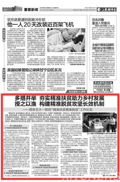 “精准扶贫”是全面建成小康社会、实现中华民族伟大复兴“中国梦”的重要保障。西安交大一附院按照陕西省委、省政府部署,认真贯彻党和国家精准扶贫、精准脱贫方针和要求,从2015年起,深入平利县西河镇三合村,打响精准扶贫攻坚战。两年多来,一附院党委聚集资源、靶向施策,利用自身优势,面向基层医院、乡镇学校、三合村贫困人口,开展医疗健康扶贫、教育扶贫、产业开发扶贫等,探索构建出了贫困山区县多点支撑、多路并进的精准扶贫、精准脱贫攻坚长效机制,赢得了秦巴山区群众的广泛赞誉,荣获陕西省精准扶贫工作先进单位。