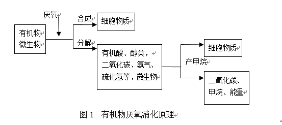 所谓厌氧消化是指在无氧气条件下,利用厌氧微生物的作用,有控制地使废物中可生物降解的有机物分解,转化为二氧化碳、甲烷和许多稳定物质的生物化学过程。图1为有机肥厌氧消化原理。