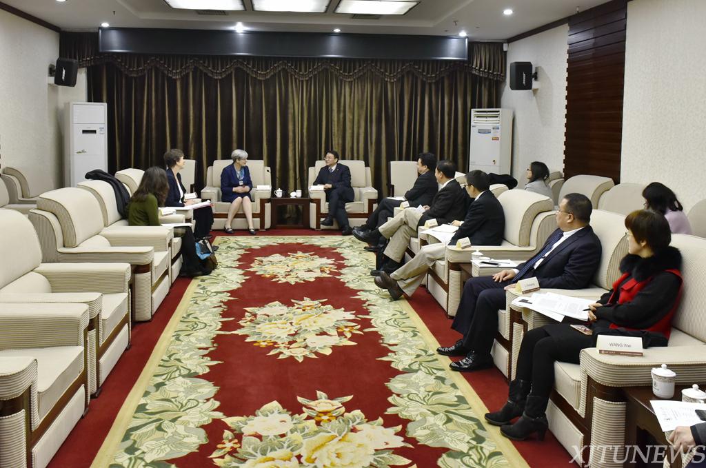 Beveridge副校长详细介绍了英国利物浦大学学科发展规划,特别提到了以发展交叉学科为主的综合实验室、多学科研究学院建设情况,以及管理、人力资源、市场营销、法学,以及艺术等学科概况。她期待双方借助丝绸之路大学联盟和子联盟平台,积极推动两校合作步入新阶段、创造新成果。