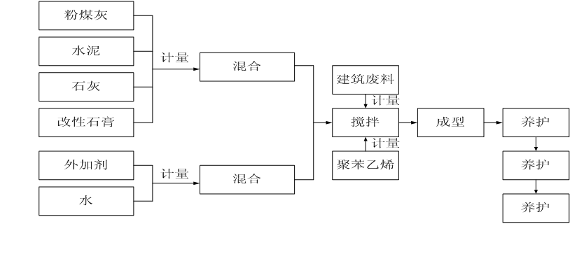 2) 采用添加复合外加剂,实行免烧和免蒸的自然养护工艺制造新型工业废渣复合保温墙体材料,简化了工艺,节省了能源,符合工业减排节能的政策;