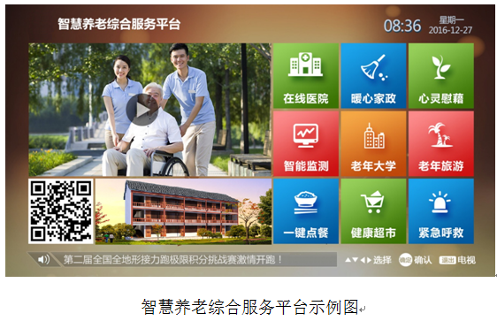 智慧养老是在智慧城市服务平台的基础上,利用先进的电视网+互联网+移动网+物联网技术手段,搭建面向居家老人、社区和养老机构的物联网系统与信息平台。智慧养老平台有效整合社会和政府资源,结合信息技术手段,借助政府和专业化的社会力量,为老人及家属提供生活帮助、健康管理、亲情关爱、安全管理和教育娱乐等全方位服务。