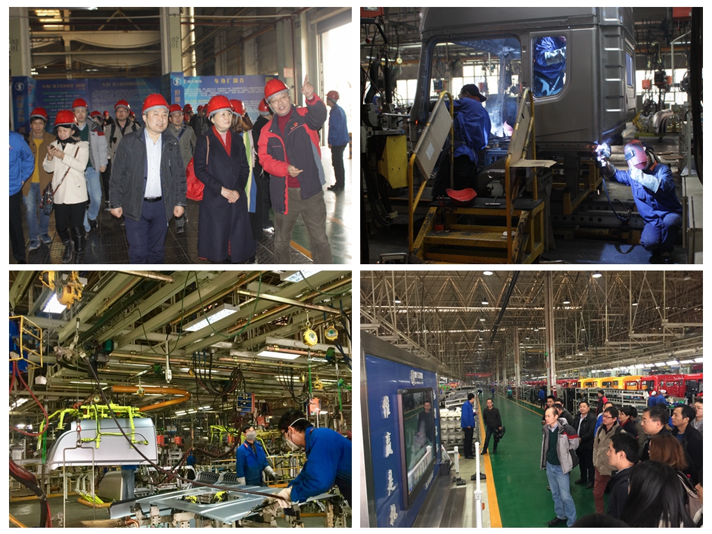 随后参观交流团一行还前往陕汽的生产车间,参观了包括钣金冲压车间,电焊车间,整车装配总成车间在内多个车间,参观途中,陕汽工作人员向大家详细介绍了车身、总装线的配置和生产能力等情况。
