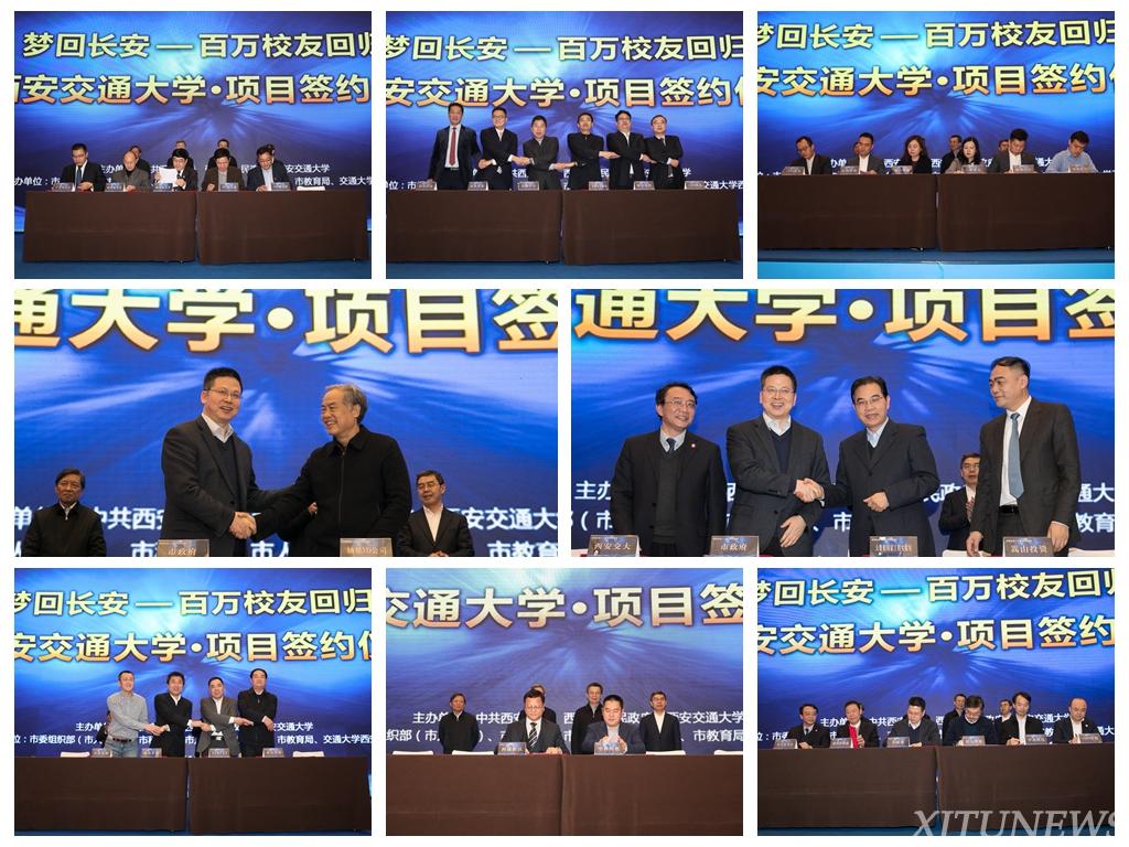 在王永康书记、上官吉庆市长、张迈曾书记、王树国校长的共同见证下,校友、校友企业和与校友关联的社会企业同西安市、西安交大进行了合作项目签约。签约项目涉及新材料、3D打印、人工智能与大数据特色小镇,交大全球校友协同创新产业基地、校友创业投资基金、双创基地等重大项目。