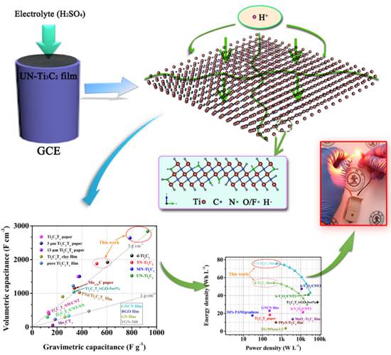 作为一种高性能、低成本、环境友好的储能器件,超级电容器由于其高功率密度、快速充放电能力、优异的可逆性和超长循环寿命等优点,成为科学研究的热点之一。现今,越来越多的电子设备聚焦物理尺寸的小型化、微型化、柔性化,为此,开发一种新的大密度、高体积、高能量、高密度的柔性电极材料迫在眉睫。而作为一类新奇的二维纳米材料,MXenes就可拥有上述诸多优点。