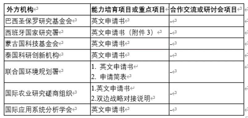 具体填报要求详见与各资助机构及国际组织的合作项目说明。