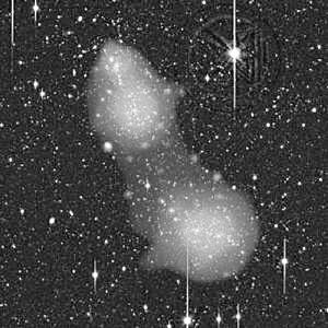 星系团阿贝尔222和阿贝尔223的复合X光的图像。两星系由弥漫着高温气体的“网丝”相联结