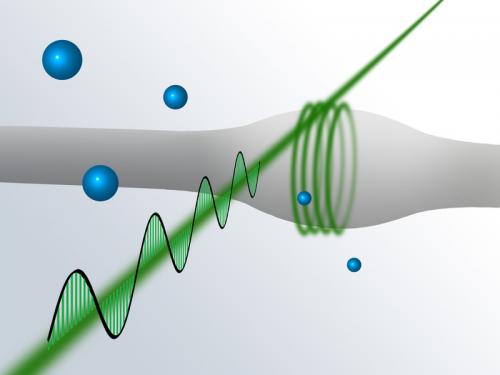 在一个瓶子微共振腔内,当激光不沿光纤行进而是围绕光纤呈螺旋状行进时,能被耦合成一种光学玻璃纤维。光在瓶子微共振腔内可被存储约10纳秒,相当于围绕光纤旋转3万圈所耗费的时间,这足以让光和被带到光纤表面附近的单个原子之间相互作用。但维也纳技术大学科学家在最新实验中发现,这种情况下,光和物质的耦合程度比以前认为的要强。他们对这一令人吃惊的答案的解释是,在这样的微共振腔内,光拥有一种独特的属性:纵向振动。