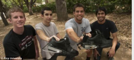 据英国每日邮报报道,目前,美国莱斯大学机械工程系大学生最新研制一种发电的鞋子,可以对手机进行充电。