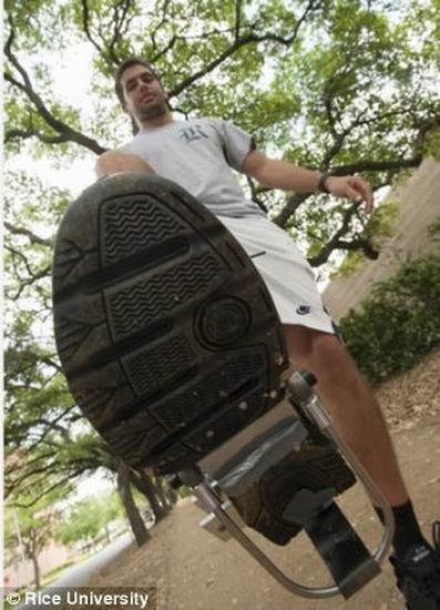 工程系大学生朱利安-卡斯特罗正在展示最新研制的发电鞋——“PediPower” 美国莱斯大学4位学生设计一种发电鞋,将人们每走一步产生的能量采集存储为电能,用于手机充电。这款新型“PediPower”鞋可作为手机充电器,未来有望基于该原理对救生医学装置进行充电。