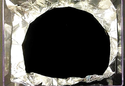 一种新出现的“最黑”材料,仅仅反射0.035%的光,达到了肉眼根本无法分辨的程度,黑得就像出现了一个黑洞。由此创造了一项最新纪录。