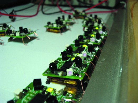 研究人员表示,群体机器人可用作“突发行为”的基础研究——“突发行为”指个体生物的合作方式,比如,形成鸟群、昆虫群或鱼群,当它们合作时可以进行复杂行为。研究人员制作的机器人使用了附着在电路板上可以让手机震动的微型电动机。