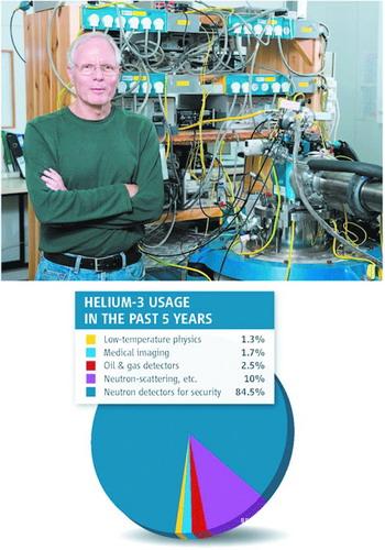 《科学》的文章指出,几年前,当氦-3的需求量急剧上升时,它的供应却出现了萎缩,特别是在2002年,美国国土安全部(DHS)和能源部(DOE)开始配置数千台以氦-3填充的中子探测器,以帮助预防钚和其他放射性材料走私进入美国。DOE的一项研究显示,从短期来看,氦-3的需求量可能会达到每年6.5万升,但年度供应量却徘徊在1万升到2万升之间。氦-3的缺乏威胁到几个研究领域,作为美国氦-3的主要供应者,DOE目前只为美国资助的研究人员提供这种气体。