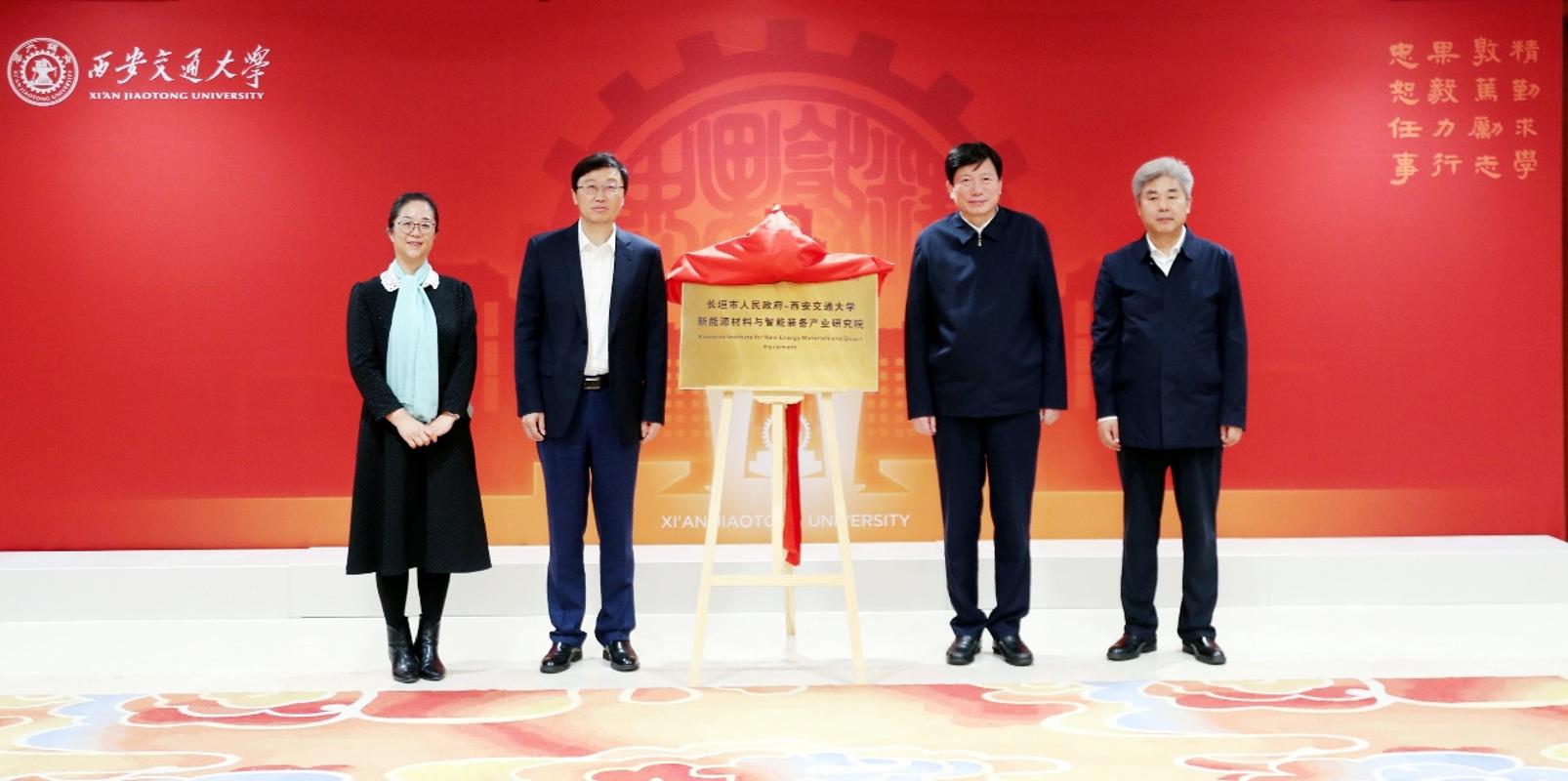 张立群、李卫东、别朝红、范文卿为“长垣市人民政府—西安交通大学新能源材料与智能装备产业研究院”揭牌。