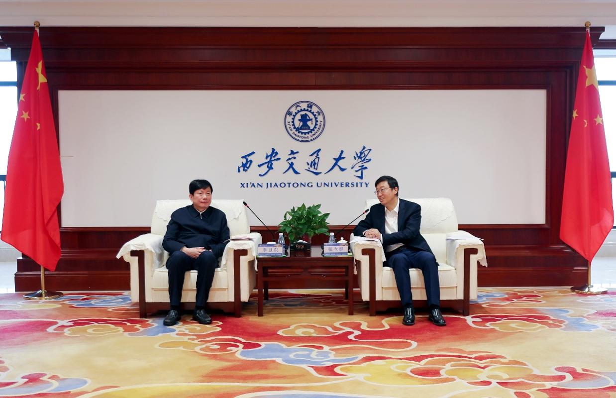 10月15日,河南省新乡市委书记李卫东带队来访西安交通大学。西安交通大学校长、中国工程院院士张立群会见李卫东一行。双方围绕依托交大创新港深化校地合作、促进科技成果转化等进行了深入交流,签署了《新乡市人民政府 西安交通大学战略合作协议》,并为“长垣市人民政府—西安交通大学新能源材料与智能装备产业研究院”揭牌。新乡市委常委、秘书长李德龙,副市长刘兵,长垣市委书记范文卿,西安交大党委常委、常务副校长别朝红参加。