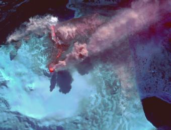 美国航天局日前对外宣布称,该国位于南极上空的“Terra”号科学考察卫星首次成功地拍摄并记录到了南极地区一座火山喷发的情景。